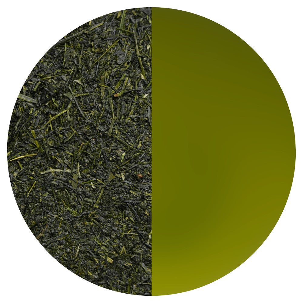 Ein beschatteter und tief gedämpfter Grüntee, dessen intensive Dämpfung eine leuchtend tiefgrüne Tassenfarbe hervorbringt und besonders viele natürliche Inhaltsstoffe des Tees in den Aufguss abgibt. Er schmeckt süß und cremig mit saftigen Mango- und Bananennoten, getragen von dichtem Umami und einer weichen, vollmundigen Textur.